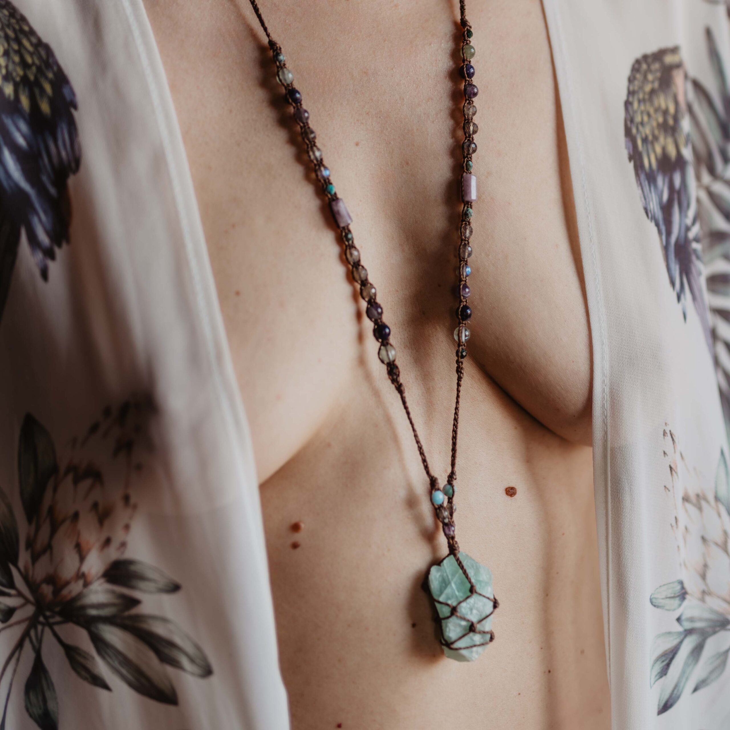 Lepidolit wnosi spokój i ukojenie w życie pełne napięć, otwierając przestrzeń dla subtelnej zmysłowości i radości serca. Łączy nas z czakrą serca i koroną, harmonizując emocje, uwalniając od stresu i przytłaczających myśli, a jednocześnie pobudza delikatną wrażliwość na piękno i bliskość. Jego energia wspiera równowagę psychiczną, otwiera drogę do akceptacji siebie i innych, a także inspiruje do świadomego doświadczania przyjemności i bliskości w relacjach. Lepidolit pomaga w regeneracji układu nerwowego, łagodzi bezsenność i wspiera pracę tarczycy.