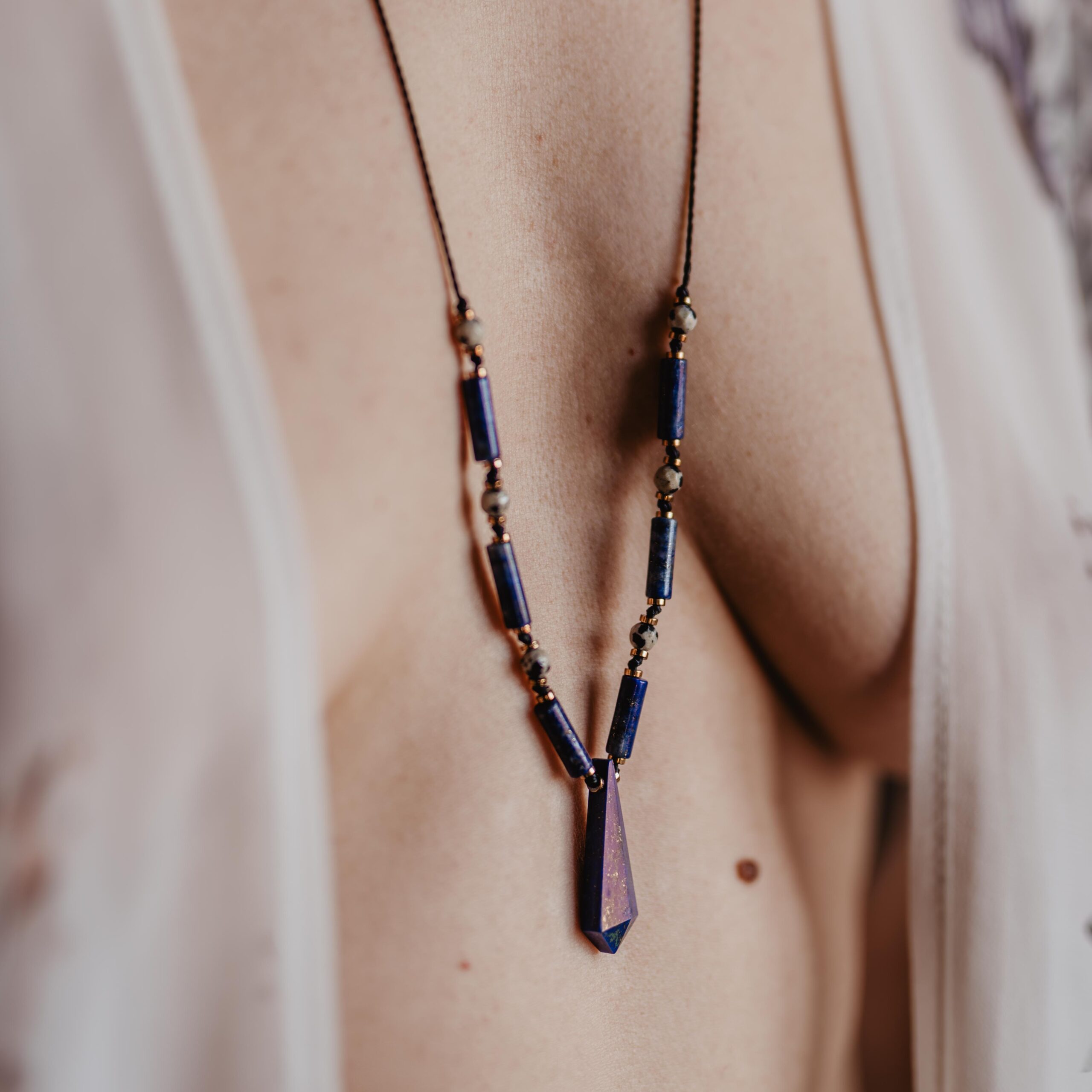 Lapis Lazuli łączy nas z duchową mądrością i głębokim wglądem w siebie. Aktywuje czakrę trzeciego oka, wspierając intuicję, jasność myśli i wewnętrzną prawdę. Jego energia otwiera drogę do wyrażania siebie w pełni, inspiruje do szczerej komunikacji i twórczej ekspresji. Lapis Lazuli wprowadza harmonię między emocjami a intelektem, wzmacniając poczucie wewnętrznej równowagi i spokoju. Kamień ten wspiera układ nerwowy, łagodzi napięcia, wzmacnia odporność i wspomaga zdrowie gardła.